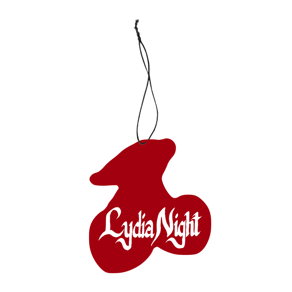 Cardboard Air Freshener With An Elastic String. Cherry Image On Front And Lydia Night Logo On Back. 2.67” x 3.37”. Cherry Scent